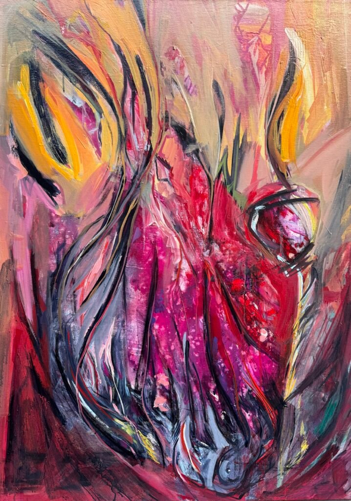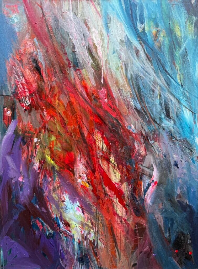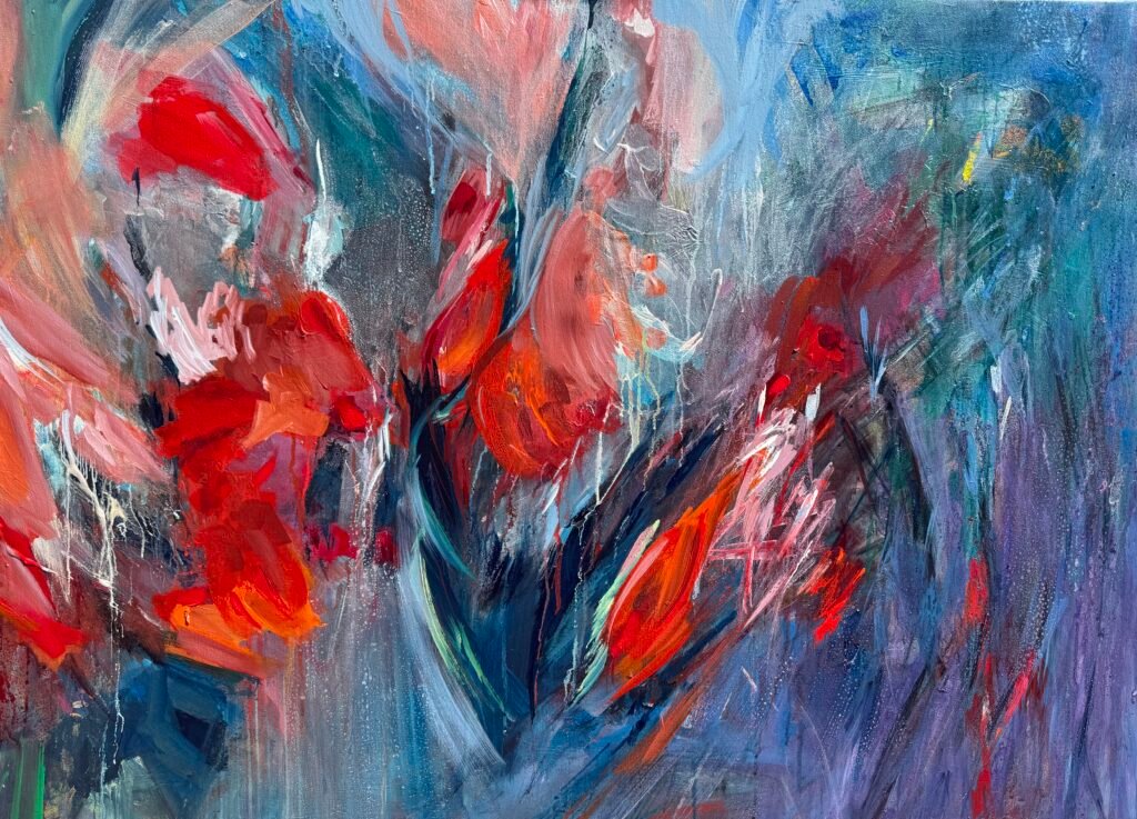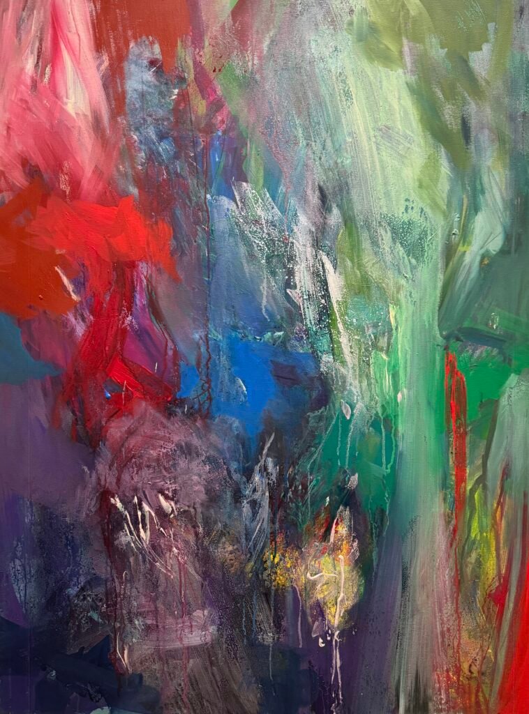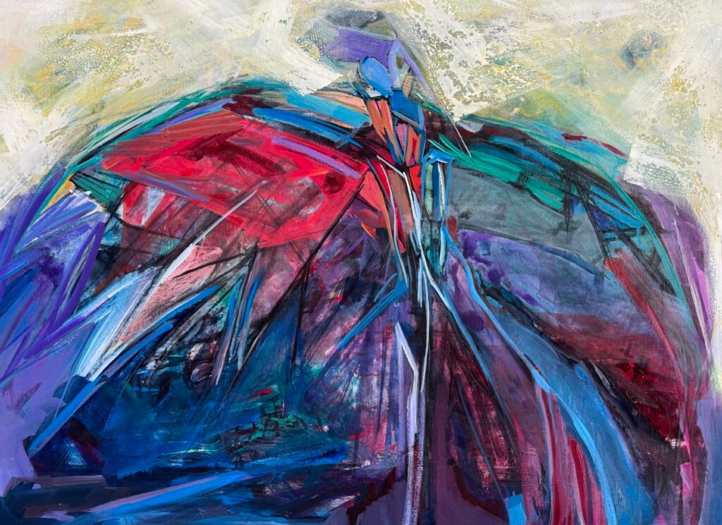 Stella Houtvast (1960) ziet het schilderen als een vorm van communicatie, als het uitdrukken van taal in penseelstreken. Haar werk wordt lyrisch-abstract genoemd. Dit betekent dat het werk van Stella ongebonden is in kleurgebruik, spontaan, impulsief, improviserend en emotioneel. Haar penseelstreken zijn dynamisch en de kleuren worden met emotie op het doek gebracht. Die kleuren, vormen en beweging bepalen uiteindelijk het resultaat met een duidelijke compositie en balans. Ieder schilderij heeft zijn eigen verhaal. Ze vindt het belangrijk dat niet haar verhaal je bezighoudt, maar jouw verhaal bij haar schilderijen.
