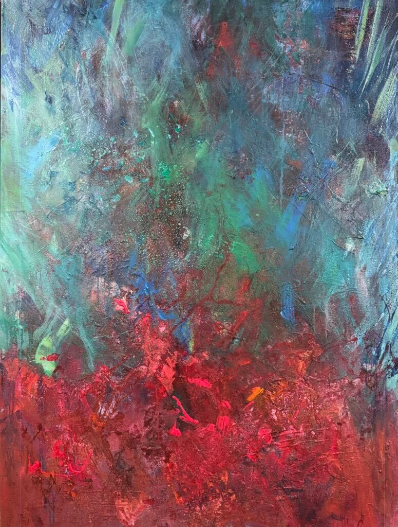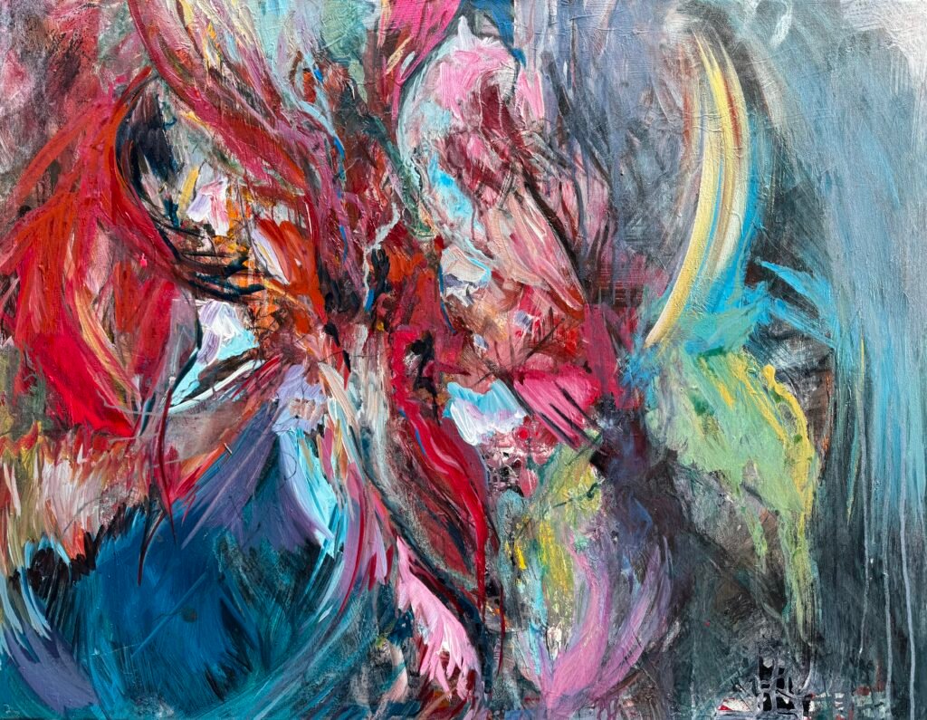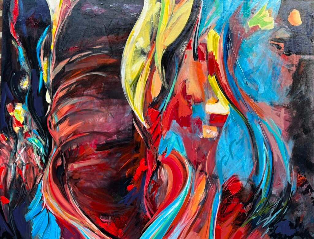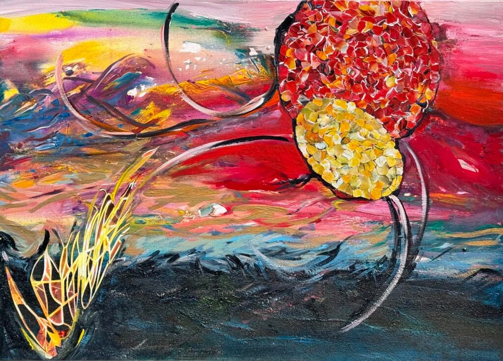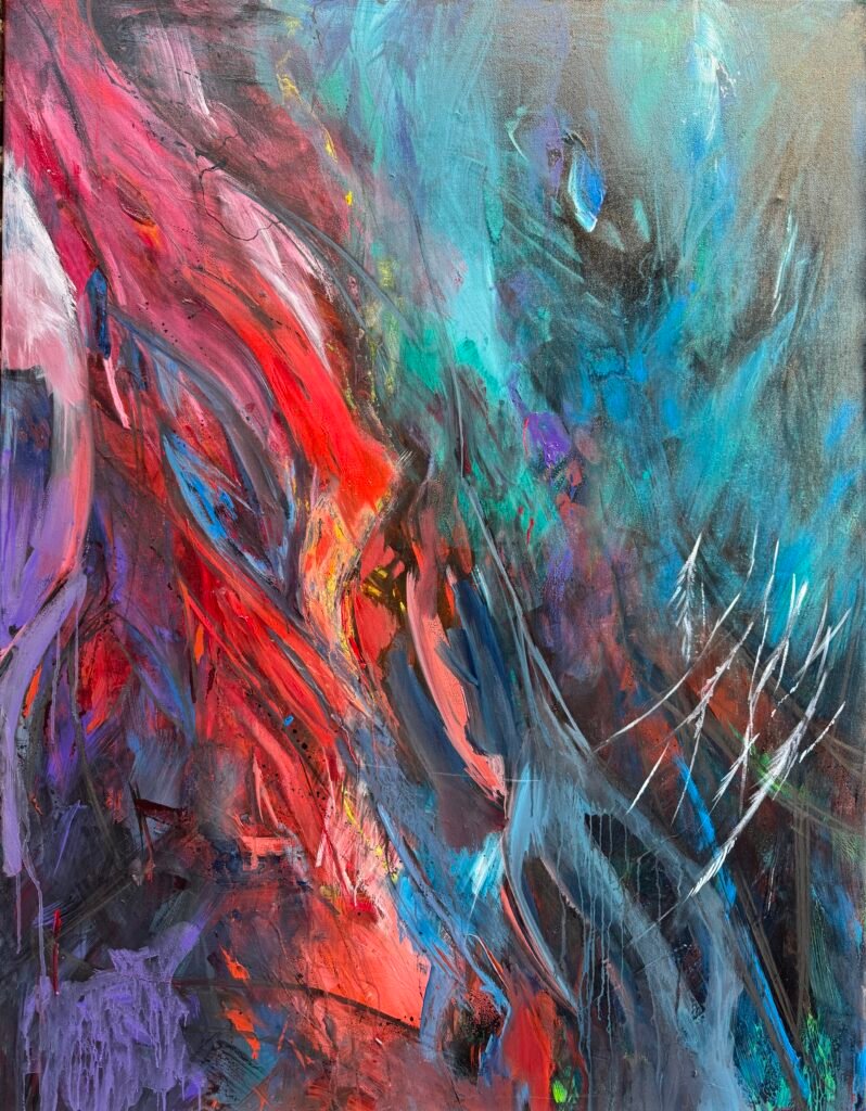 Stella Houtvast (1960) ziet het schilderen als een vorm van communicatie, als het uitdrukken van taal in penseelstreken. Haar werk wordt lyrisch-abstract genoemd. Dit betekent dat het werk van Stella ongebonden is in kleurgebruik, spontaan, impulsief, improviserend en emotioneel. Haar penseelstreken zijn dynamisch en de kleuren worden met emotie op het doek gebracht. Die kleuren, vormen en beweging bepalen uiteindelijk het resultaat met een duidelijke compositie en balans. Ieder schilderij heeft zijn eigen verhaal. Ze vindt het belangrijk dat niet haar verhaal je bezighoudt, maar jouw verhaal bij haar schilderijen.