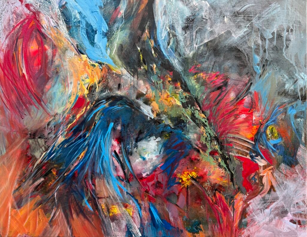 Stella houdt zich de laatste jaren gericht bezig met het thema Feniks. De feniks is een bekend mythisch wezen, een vogel die symbool staat voor wedergeboorte, onsterfelijkheid en veerkracht. De legende vindt zijn oorsprong in de oudheid en is door verschillende culturen overgenomen. Deze expositie is een aaneenschakeling van symboliek en mythe. Mythen vergroten capaciteiten uit in ons menselijk bestaan. Ze hebben een sterk symbolisch karakter en een allegorische vorm om waarheden weer te geven. Symboliek maakt daarbij aanschouwelijk wat niet meteen aanschouwelijk is. Twee krachten die in de 21e eeuw nog steeds een plek bezitten in de populaire cultuur. Feniks; de mythe, referreert aan hernieuwing, verkrijgen van wijsheid en de dualiteit die het hele bestaan van het universum vormgeeft. Carl Gustav Jung schreef in zijn ‘Symbols of Transformation’ over dit archetype: de Feniks transformeert en weerspiegelt de veerkracht van mensen.